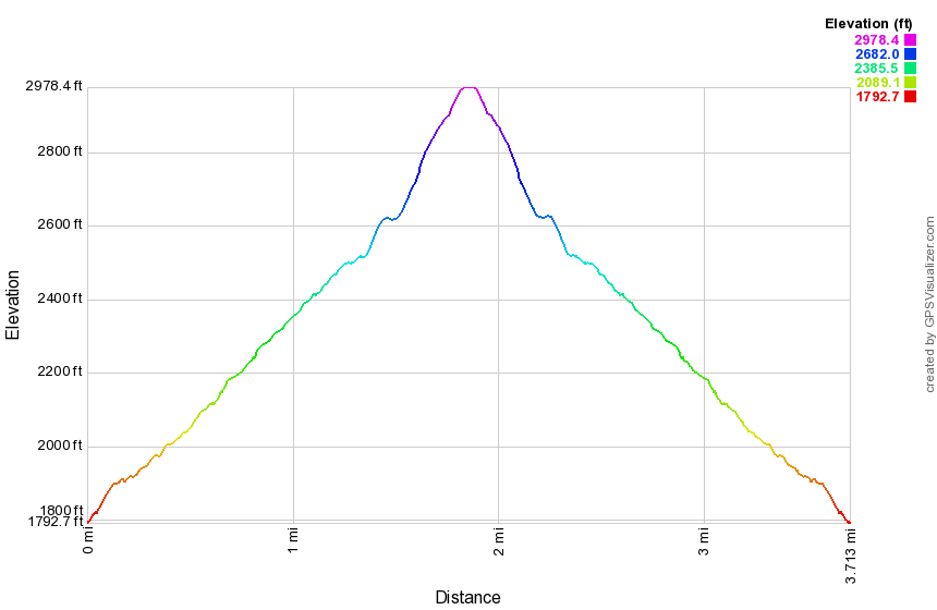 (The image at the left shows the profile of the loop hiking route. Remember that all vertical profiles are