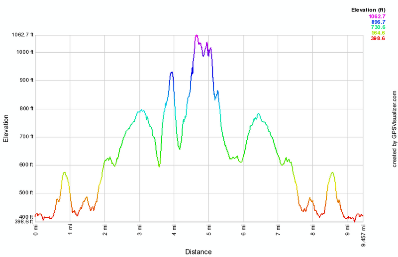 (The image at the left shows the profile of the hike. Remember that all vertical profiles are relative!)