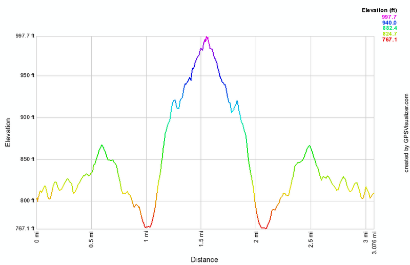 (The image at the left shows the profile of the hike. Remember that all vertical profiles are relative!)
